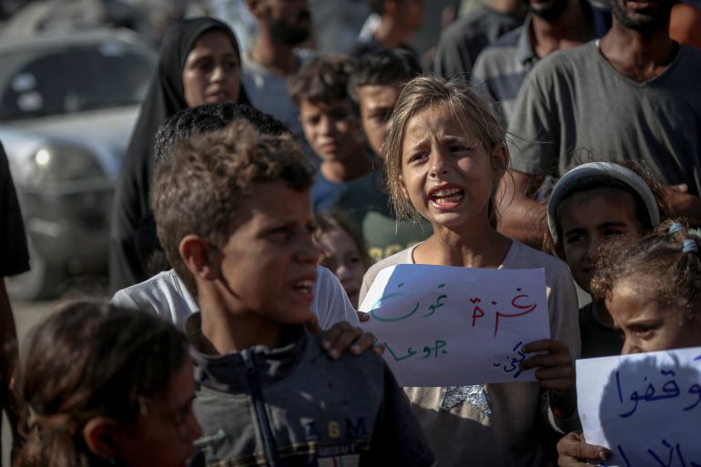 UNICEF says that pictures of children who cannot stand from hunger are a “human warning bell”, amid calls for an immediate ceasefire and allowing supplies to enter without restrictions.